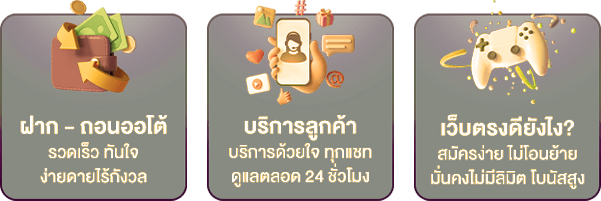 ตอบ : - ระบบฝาก-ถอนอัตโนมัติผ่าน True Wallet และธนาคารชั้นนำ ทำรายการภายใน 30 วินาที ไม่มีขั้นต่ำ